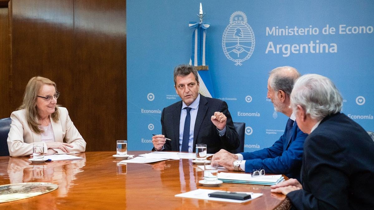 El ministro de Economía, Sergio Massa, recibió este viernes a la gobernadora de Santa Cruz, Alicia Kirchner, tras la presentación del Plan Argentina Irrigada, que apunta a incorporar 1,9 millones de hectáreas a la superficie agrícola con riego.