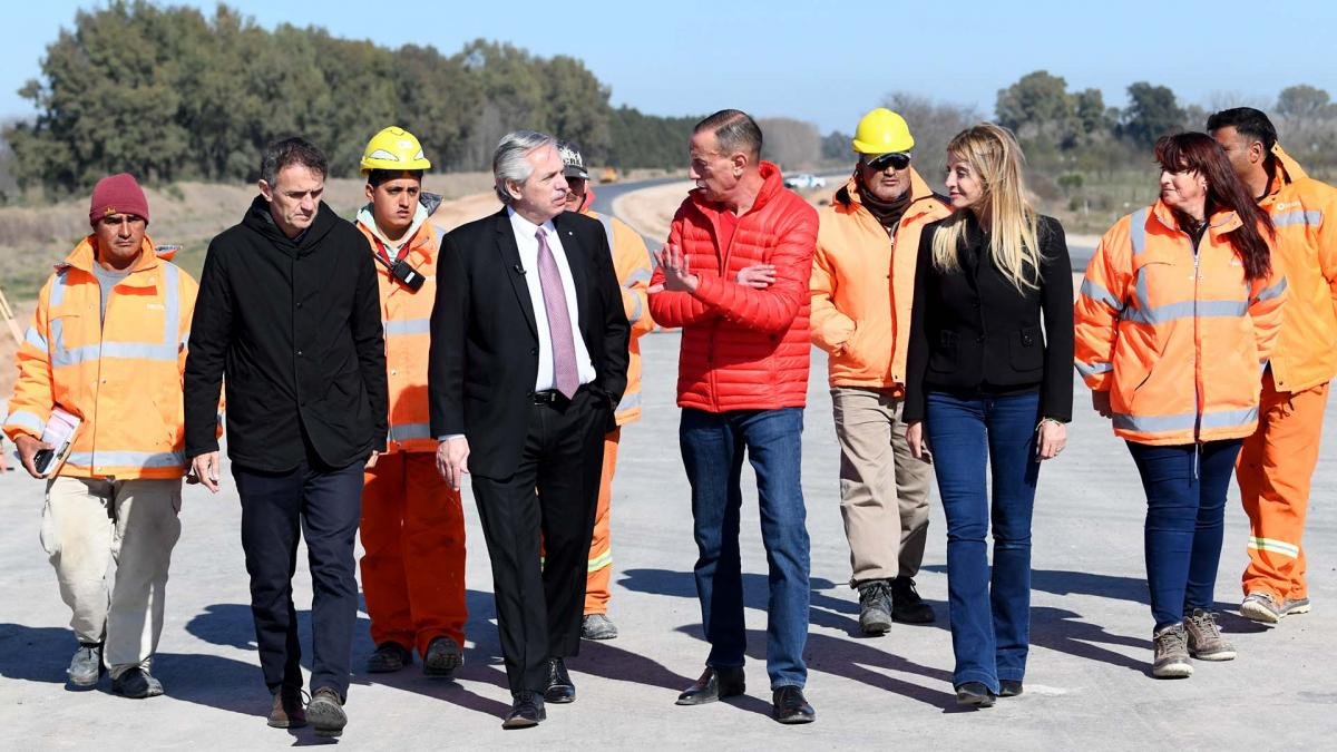 El presidente Alberto Fernández recorrió este viernes las obras viales que conectarán la autopista Ezeiza-Cañuelas con la Ruta Nacional 3, y beneficiará a más de 9.500 vehículos que diariamente utilizarán el nuevo tramo.