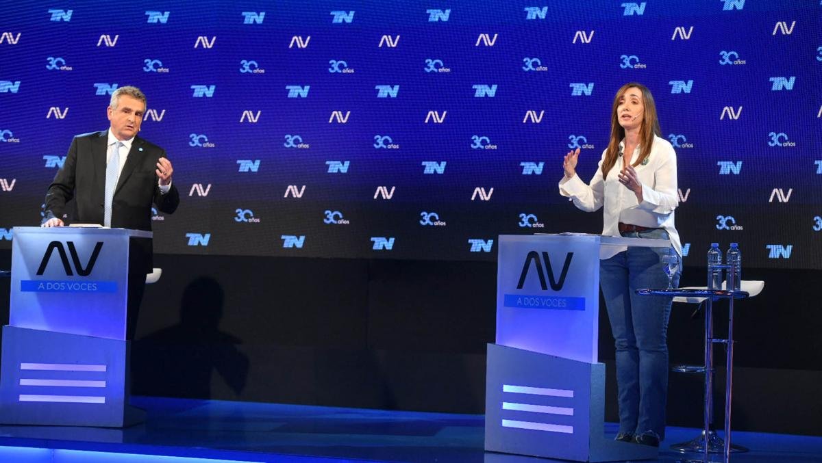 Rossi y Villarruel, compañeros de fórmula de los candidatos presidenciales Sergio Massa y Javier Milei, respectivamente, se vieron cara a cara nuevamente convocados para debatir por el programa «A dos voces», en el canal de cable Todo Noticias (TN), tal como habían hecho el 21 de septiembre pasado, antes de los comicios generales.