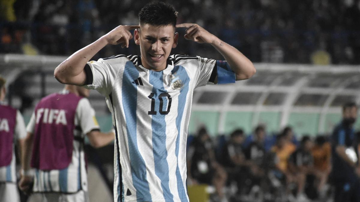 Valentino Acua celebra el segundo gol del seleccionado Sub 17
