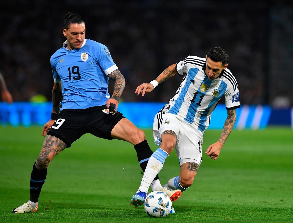 1´ Falta de Darwin Núñez sobre Lionel Messi, tiro libre para Argentina frente al arco Charrúa