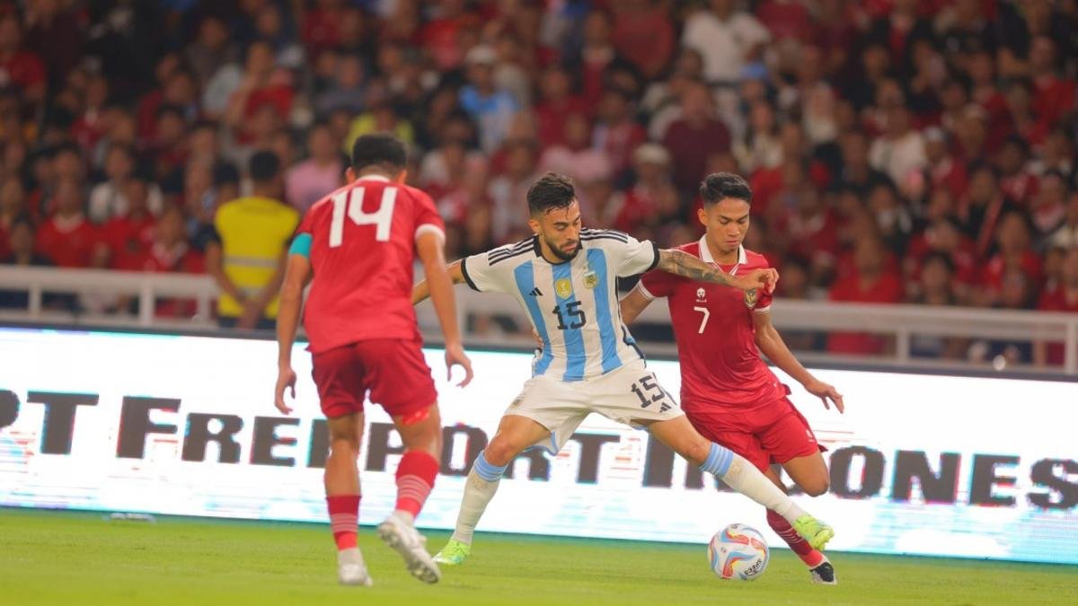 22´ Falta de Marselino Ferdinan sobre González, el más inquietante en Argentina, y el juez marca tirol libre sobre la puerta del arco indonesio