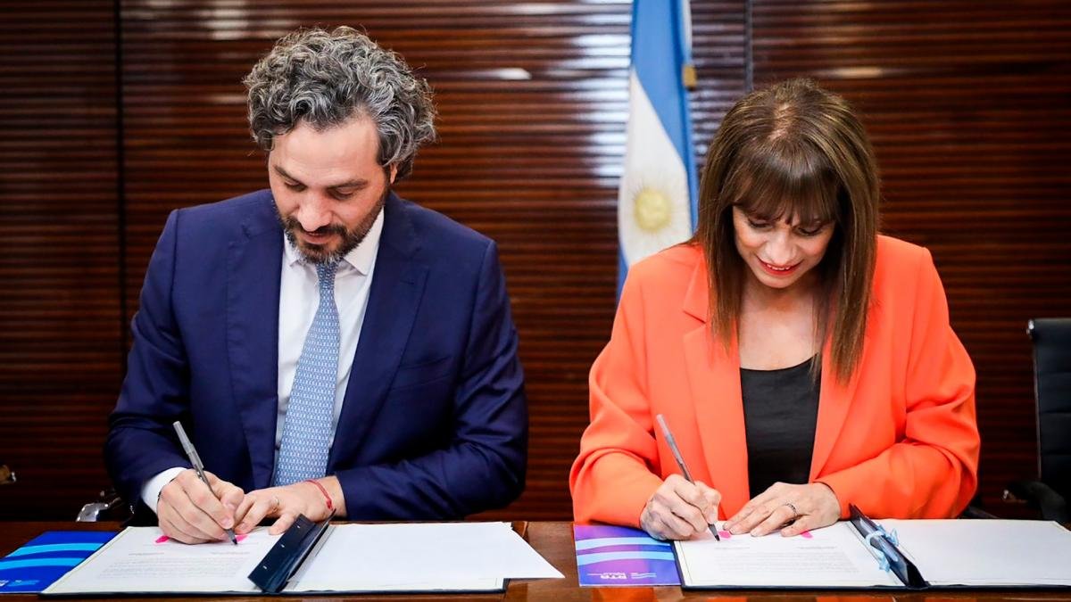 El canciller Santiago Cafiero y la presidenta de Radio y Televisión Argentina Sociedad del Estado (RTA SE), Rosario Lufrano, firmaron este miércoles un convenio para difundir los contenidos de los medios públicos a través de las embajadas argentinas en el exterior, con el fin de contribuir a la promoción de la cultura argentina, se informó oficialmente.