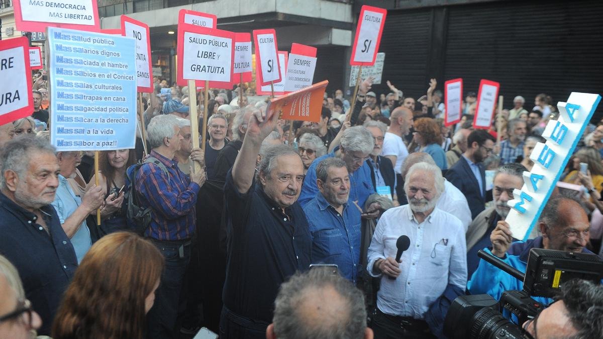«Desde las artes y la cultura nos dirigimos a los argentinos y las argentinas para alertar frente a la estafa económica y política que implica la candidatura de Javier Milei, que apoya Mauricio Macri. Abrazamos la democracia o estamos en el horno«, habían expresado en la convocatoria.