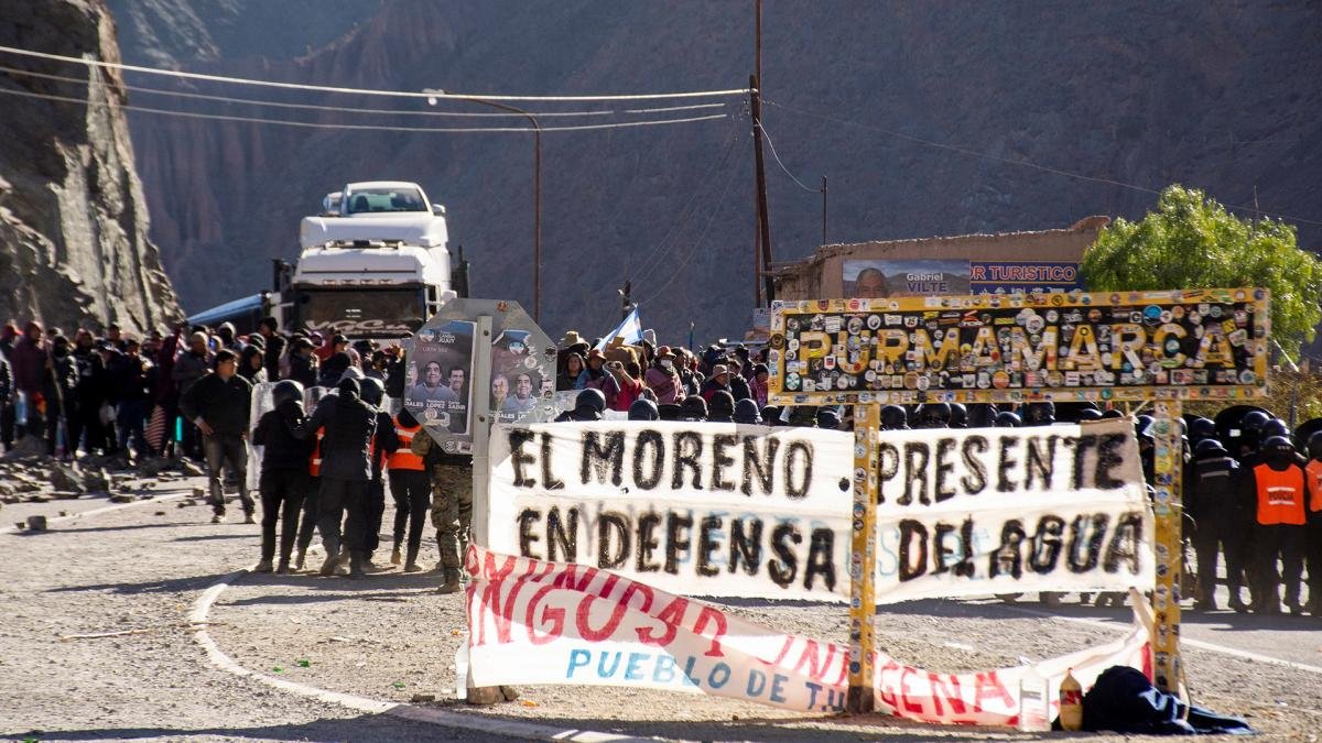 El funcionario se dirigió luego a la ruta nacional 9, en la entrada a Purmamarca, donde continuaba la protesta de las comunidades indígenas contra la reforma constitucional aprobada recientemente.