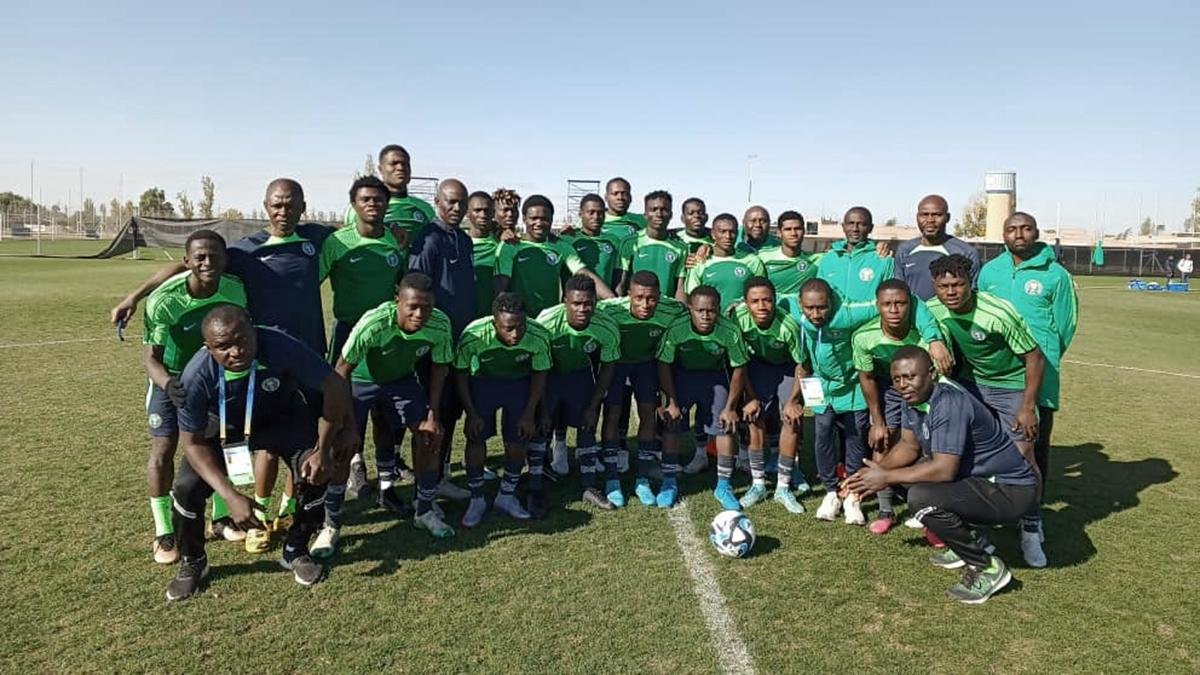 El plantel nigeriano de ftbol Sub20 y una foto grupal antes del debut ante los dominicanos Foto TW Foto TW thenff