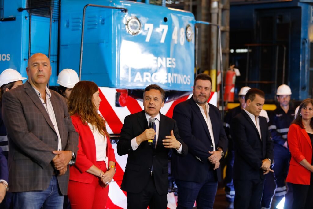 En el marco del Plan de Modernización de Transporte, el titular de la cartera, Diego Giuliano, junto al presidente de Trenes Argentinos Cargas (TAC), Daniel Vispo, encabezaron un encuentro en el taller de Alta Córdoba. Allí, presentaron dos locomotoras reparadas íntegramente en dicho taller, las cuales se incorporarán a la flota de cargas de la línea de ferrocarril Belgrano.