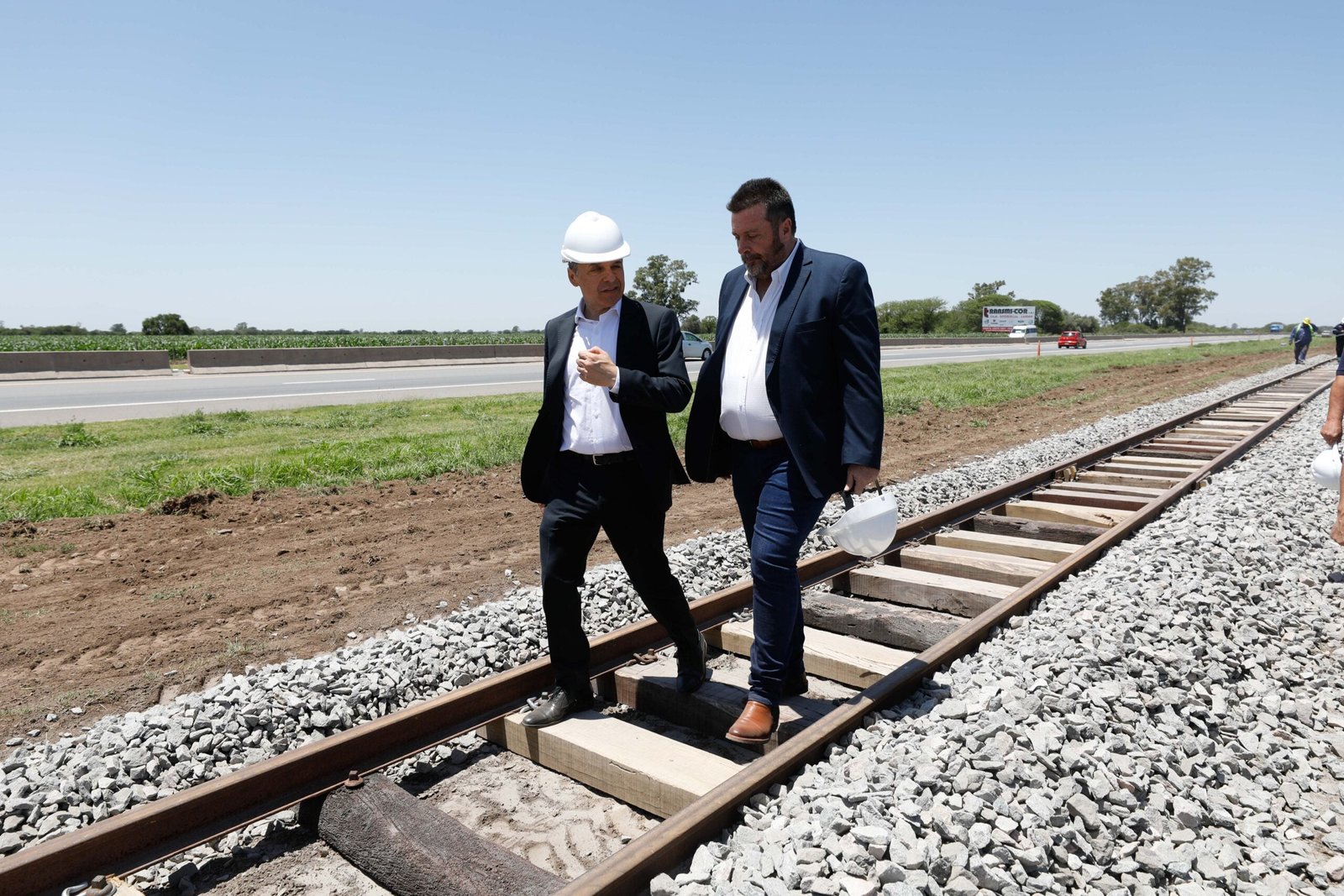 Giuliano, Vispo y las demás autoridades presentes recorrieron los avances de las obras de vía que se están ejecutando en el ramal CC de la línea Belgrano que pasa por la provincia de Córdoba (también circula por ese distrito la línea San Martín). Las labores incluyen desarme y reemplazo de rieles, fijaciones y durmientes; y a su vez se renovarán los pasos a nivel y se intervendrán vías en puentes y alcantarillas.