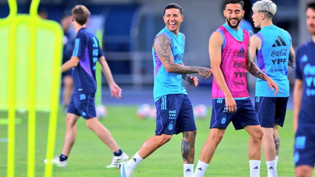 En la última práctica del seleccionado campeón del mundo en la capital china, Scaloni pudo tener a todos los convocados tras el arribo de Julián Álvarez, reciente campeón de la Champions League con Manchester City.