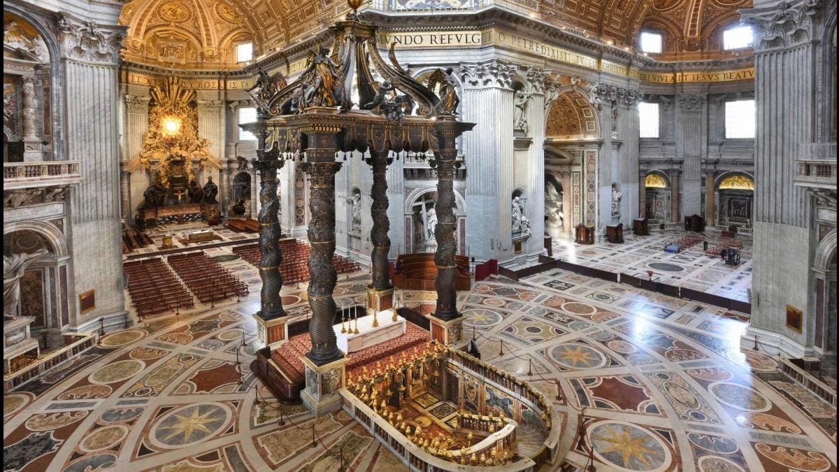 «Baldacchino deriva de Baldác, el antiguo nombre de Bagdad, de donde procedían los tejidos más preciados. En la Basílica Vaticana los cuatro postes que sostenían estos techos textiles fueron sustituidos por gigantescas columnas retorcidas de bronce, una clara referencia a las columnas que se encontraban alrededor de la tumba de Pedro en la antigua basílica», explicó Gambetti.