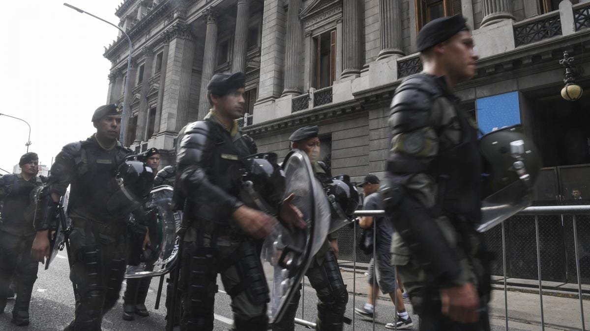 Además, carros de asalto, camiones hidrantes, motos y camionetas y micros de las fuerzas de seguridad, fueron estacionados en la calle Ayacucho y su intersección con la avenida Rivadavia y en Ayacucho y la avenida Corrientes; en las avenidas de Mayo y 9 de Julio en en la esquina de las avenidas Belgrano y Entre Ríos, entre otros puntos.