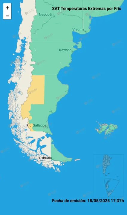 Otra vez, se trata de avisos de nivel amarillo que rigen parte de la cordillera de la provincia de Santa Cruz.