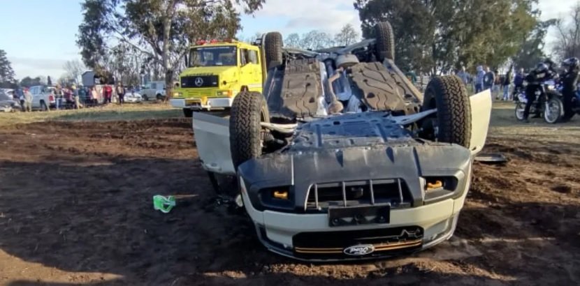 El pasado domingo, una camioneta Ford Maverick volcó mientras realizaba una prueba de manejo en una de las pistas de la Expo Venado. El conductor, un hombre de 30 años oriundo de Arias, resultó con lesiones.